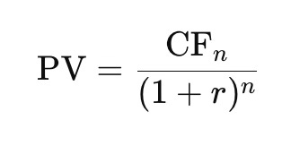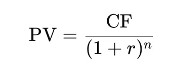 The process of discounting involves applying this rate to each forecasted cash flow. For every future period, the present value (PV) of a cash flow (CF) is calculated as: