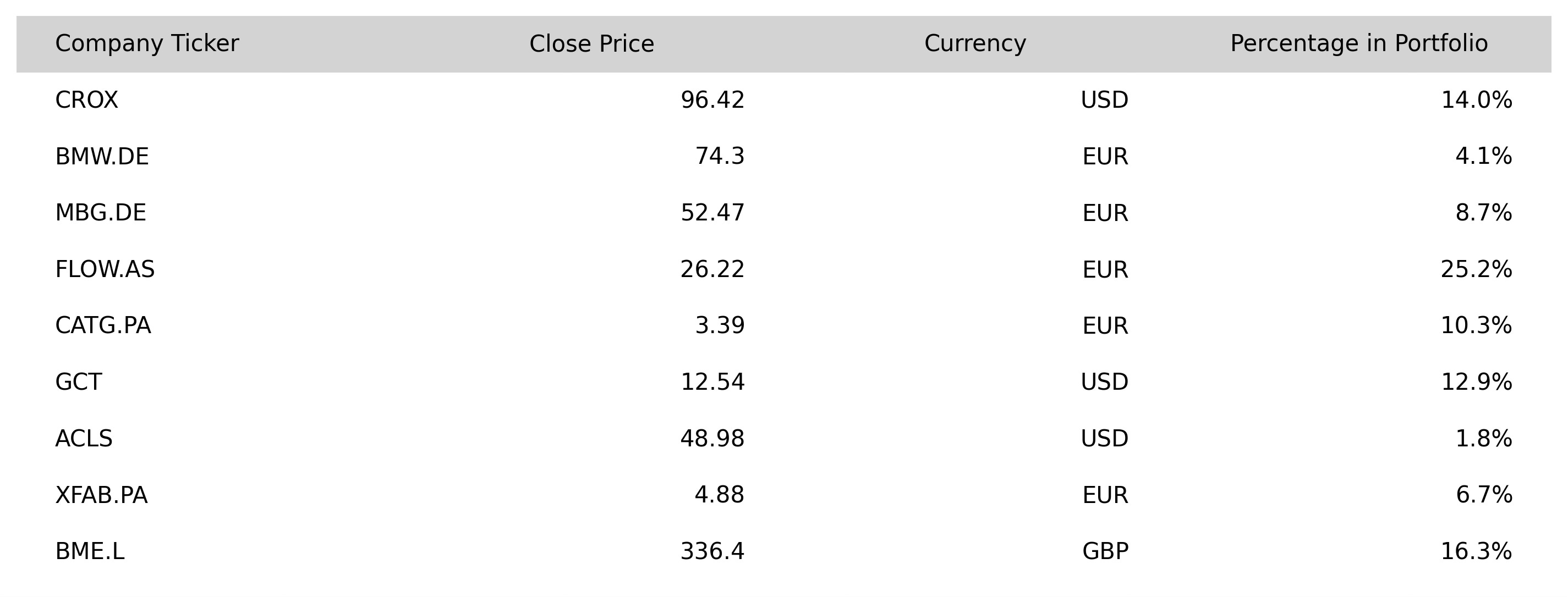 Year-to-date, Moat Mind sits at -3.2%, ahead of SPY (-5.1%) but narrowly behind RSP (-3.0%) and well off ACWI’s relatively modest -0.4% decline. Amid tightening financial conditions and uneven earnings across sectors, the portfolio’s emphasis on competitively advantaged, capital-efficient businesses continues to provide relative downside protection.
